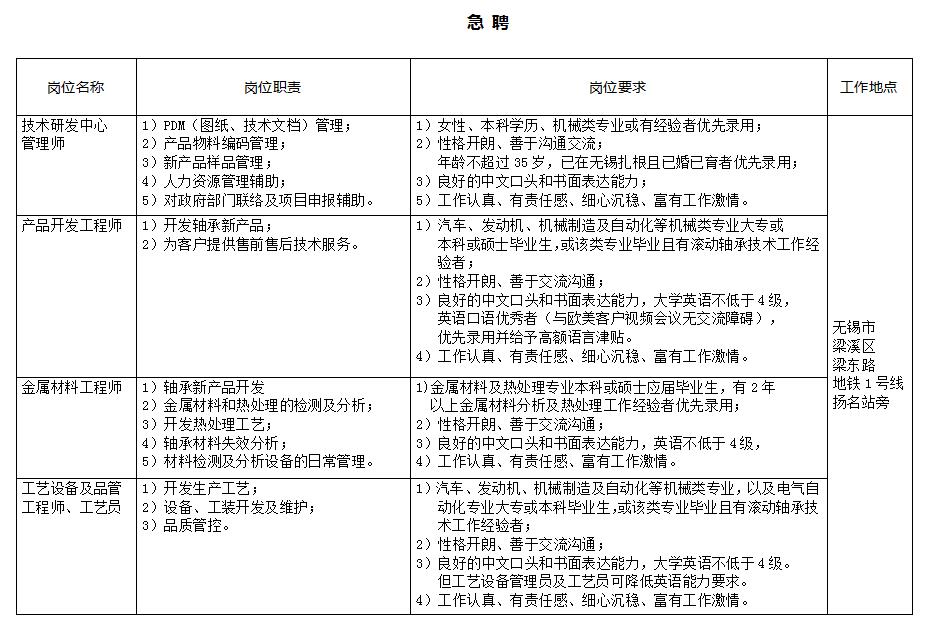 2)專業(yè)要求:摩擦學(xué)、滾動軸承、金屬材料及先進(jìn)制造相關(guān)專業(yè);